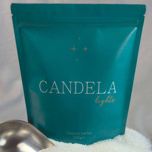 Pack Bandeja Hoja + 500 gr Vela en Perlas Blanca